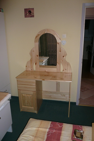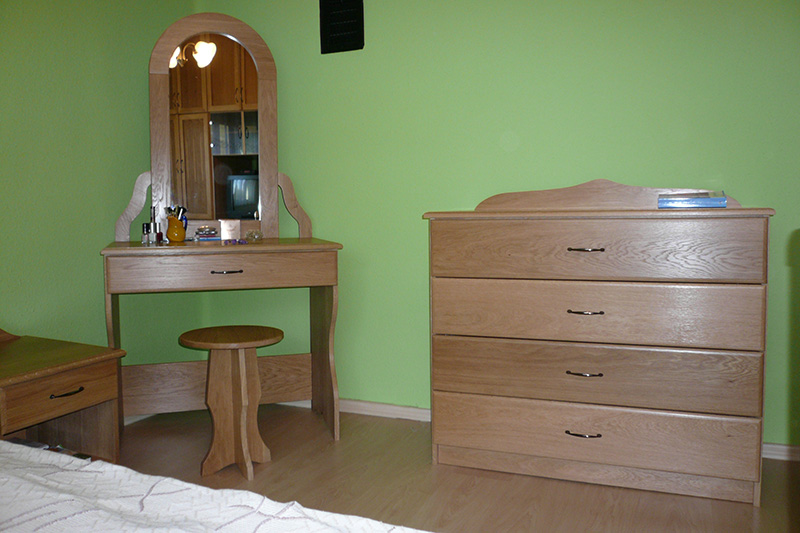Igény szerint nemcsak szekrénysort, hanem beépített szekrényt is készítünk a hálószobába. Hölgyeknek a szoba méreteihez igazodva egyedi méretben és kivitelben fésülködő asztalt székkel és szófát is gyártunk asztalosműhelyünkben.